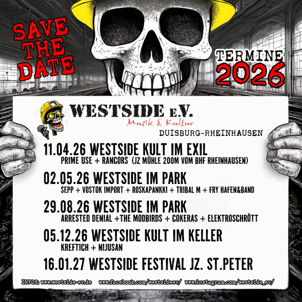 Seit 1996 gibt es Konzerte unter dem Namen โWESTSIDEโ von Bands aus dem Duisburger Westen und Moers.
